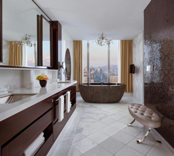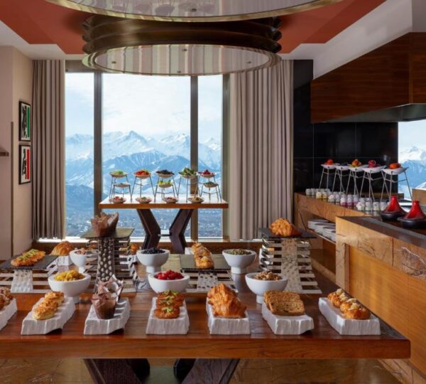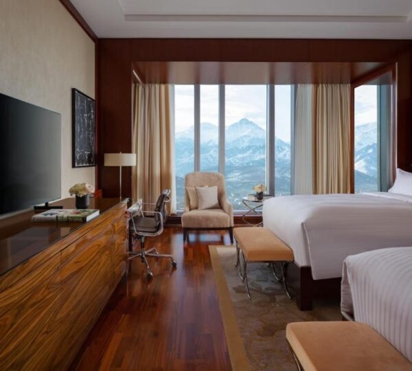Описание: Этот роскошный пятизвездочный отель расположен в Алматы, у подножия гор Алатау. К услугам гостей — спа-центр, крытый бассейн и фитнес-центр. В отеле Ritz-Carlton Almaty предоставляется бесплатный Wi-Fi. Просторные номера оформлены в теплых тонах и оснащены кондиционером. Среди удобств каждого элегантного номера — телевизор с плоским экраном и мраморная ванная комната с тропическим душем. В элегантном баре и ресторане SEVEN подают изысканные блюда. В лобби-лаундже Sky можно заказать напитки. В ресторане Vista на 31 этаже подают блюда интернациональной и казахской кухонь на завтрак, обед и ужин. Кроме того, в отеле работает несколько других ресторанов. Удобства для отдыха и релаксации отеля включают в себя роскошный спа-центр с 4 отдельными комнатами, включая отдельные зоны отдыха, сауны, паровые бани и восточный хаммам. Центр Алматы находится в 10 минутах езды от отеля Ritz-Carlton, Almaty. Горнолыжный курорт Чимбулак находится в 30 минутах езды. В одной минуте ходьбы от отеля находится торговый центр Esentai Mall, где гости могут провести свободное время, посетить брендовые бутики, кинотеатр, покушать в ресторанах и кафе. Расстояние до международного аэропорта Алматы составляет 15 км.